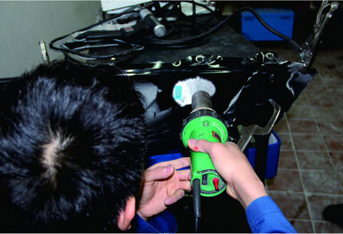 (6)鋁質(zhì)車身板件受到撞擊無法恢復(fù)時,應(yīng)采取局部或整體更換的方法進行修復(fù)。特別是在鋁質(zhì)板材損傷部位出現(xiàn)裂紋或斷裂現(xiàn)象時必須使用此方法。鋁質(zhì)板件的更換是鋁質(zhì)車身修復(fù)較為常用的一種方法。