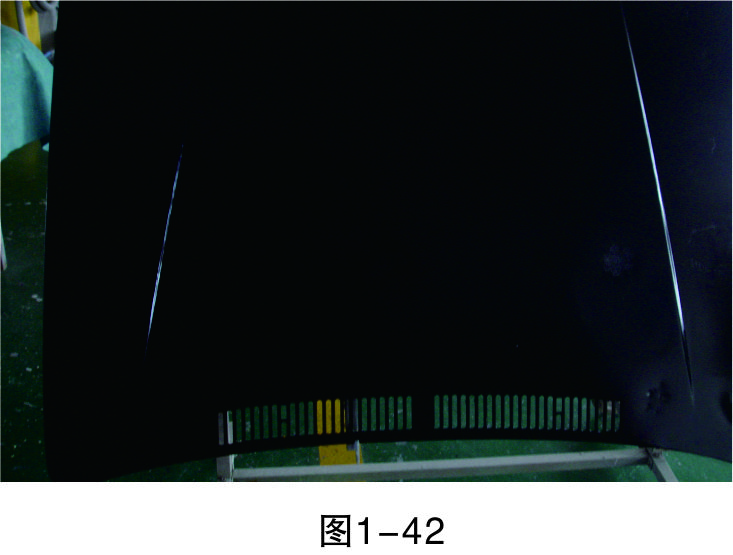 步驟1(定位):拆下發(fā)動(dòng)機(jī)蓋罩固定螺栓,將拆下的發(fā)動(dòng)機(jī)蓋罩移至修復(fù)工作臺(tái),如圖1-42所示。