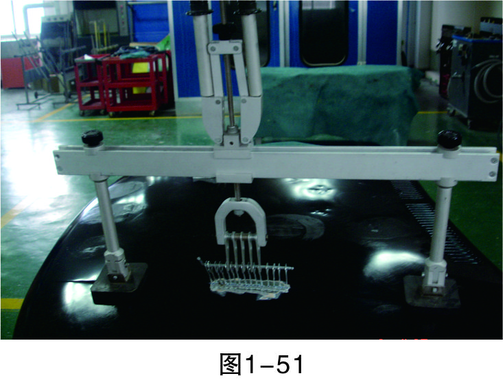 步驟6(穿進(jìn)L形鐵):在介子中穿入L形鐵,以便整形架的拉鉤能固定在上面進(jìn)行拉伸作業(yè),如圖1-47所示。