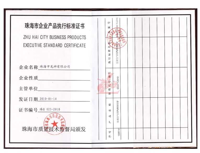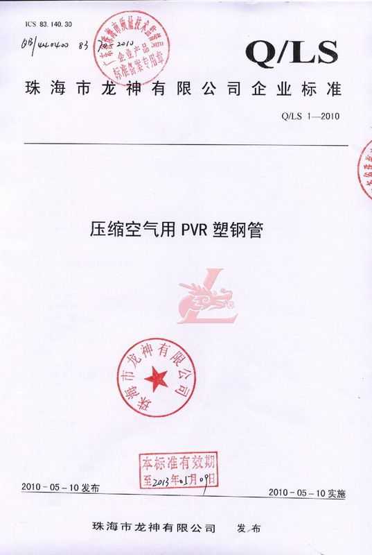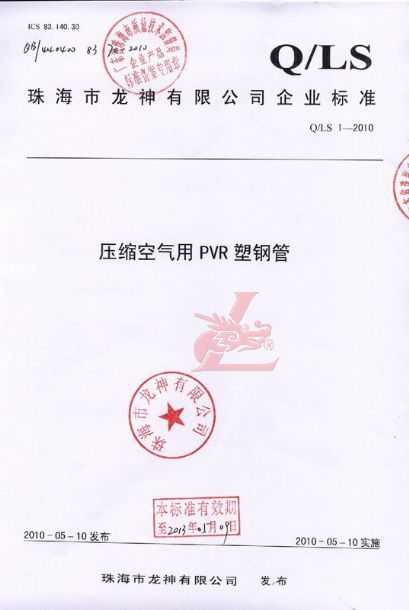 龍神壓縮空氣PVR塑鋼管成功申請企業(yè)執(zhí)行標(biāo)準(zhǔn) 2010年5月珠海市龍神有限公司“壓縮空氣PVR塑鋼管”得到珠海市質(zhì)量技術(shù)監(jiān)督局認(rèn)可,特此頒發(fā)“壓縮空氣PVR塑鋼管企業(yè)執(zhí)行標(biāo)準(zhǔn)”,龍神公司在嚴(yán)格執(zhí)行標(biāo)準(zhǔn)下,保證產(chǎn)品質(zhì)量。 2010-05-20 9866