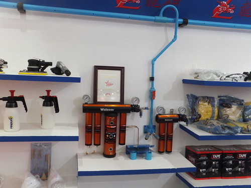 本次展出的產(chǎn)品有:鋁合金修復(fù)套裝、耐溶劑噴壺、意大利威彩噴槍、鈑金修復(fù)套裝、高精密干燥過濾器、法國佩釜快速接頭、壓縮空氣供氣管路等。