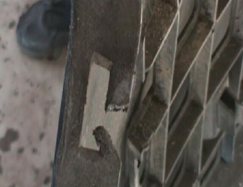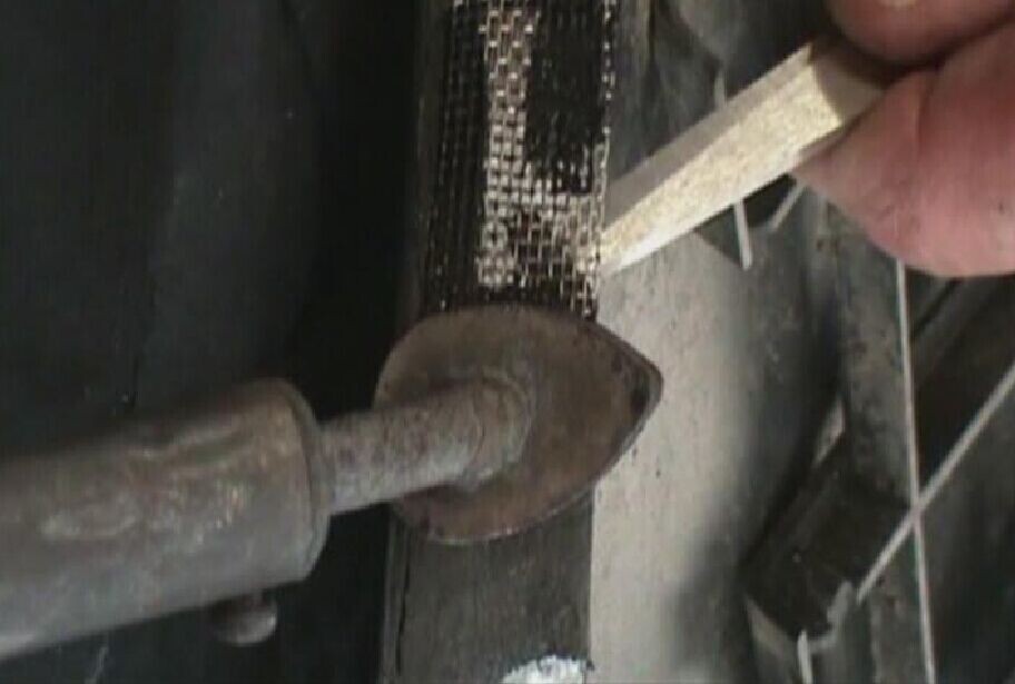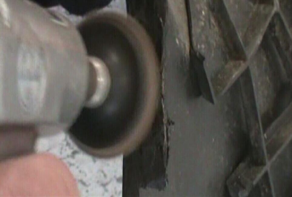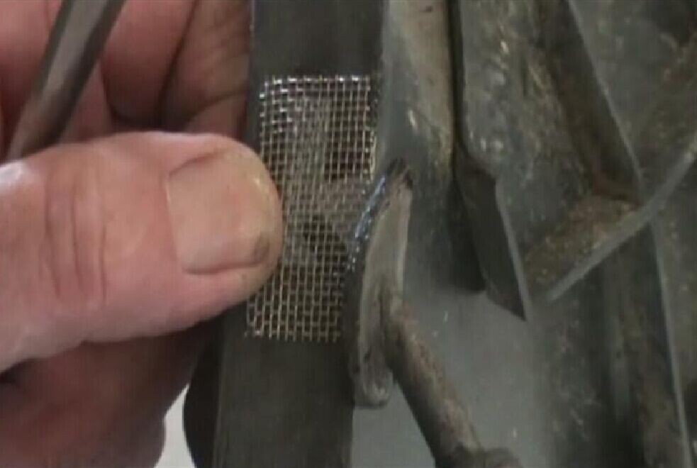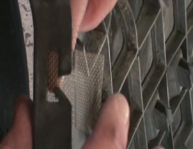 步驟6:把烙鐵按壓在加固網(wǎng)上加熱,并保持一定時(shí)間,使熔化的塑料將無銹加固網(wǎng)完全覆蓋,如圖1-6所示。注意要使覆蓋在無銹加固網(wǎng)周邊和折邊的熔膠具有一定厚度。
