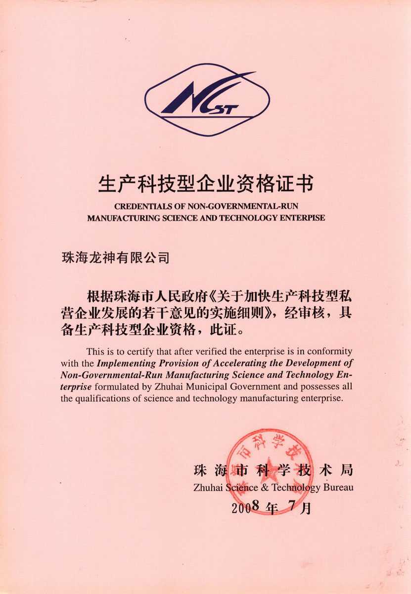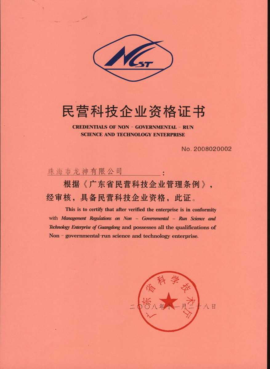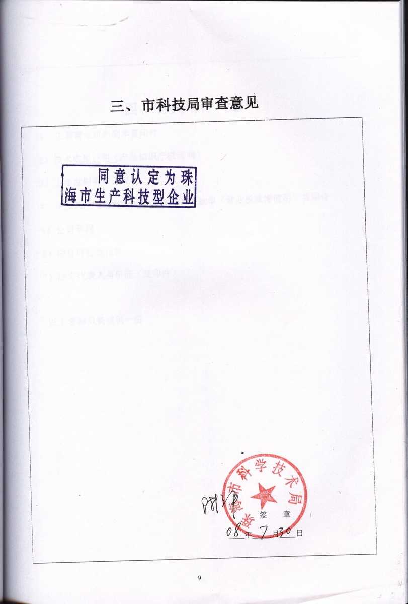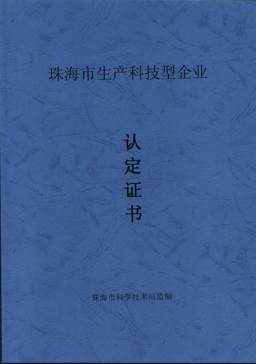 資格證書 一、ISO9001:2008質(zhì)量管理體系認(rèn)證ISO9001:2008質(zhì)量管理體系認(rèn)證證書 二、廣東省民營科技企業(yè)資格證書民營科技企業(yè)資格證書 廣東省民營科技企業(yè) 三、珠海市生產(chǎn)科技企業(yè)證書生產(chǎn)科技型企業(yè) 珠海市生產(chǎn)科技型企業(yè) 認(rèn)定證書 生產(chǎn)科技型企業(yè)資格證書(以上圖片均可點擊放大) 2012-11-27 36896