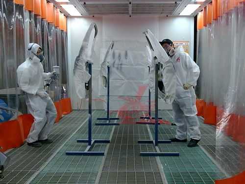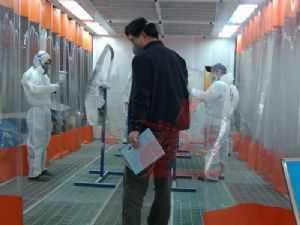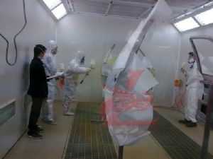 24日上午8點(diǎn)30分,比賽正式拉開(kāi)戰(zhàn)幕。各代表隊(duì)選手統(tǒng)一著裝龍神贊助的鈑噴防護(hù)用品,全身心地投入到比賽中去。選手們訓(xùn)練有素,工具準(zhǔn)備、動(dòng)手加工一氣呵成,扳手、噴槍,樣樣工具用起來(lái)得心應(yīng)手,表現(xiàn)了參賽選手們良好的精神風(fēng)貌、扎實(shí)的基本功。